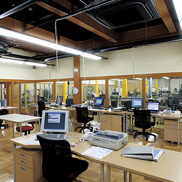 その上、伸びやかで明るい屋内空間は、社員のモチベーションを高めることを目的として設計され、外気を取り入れながら恒温となる最新の空調システムト相まって他社と比肩できない製品をつくり上げるのに大きな助けとなっています。